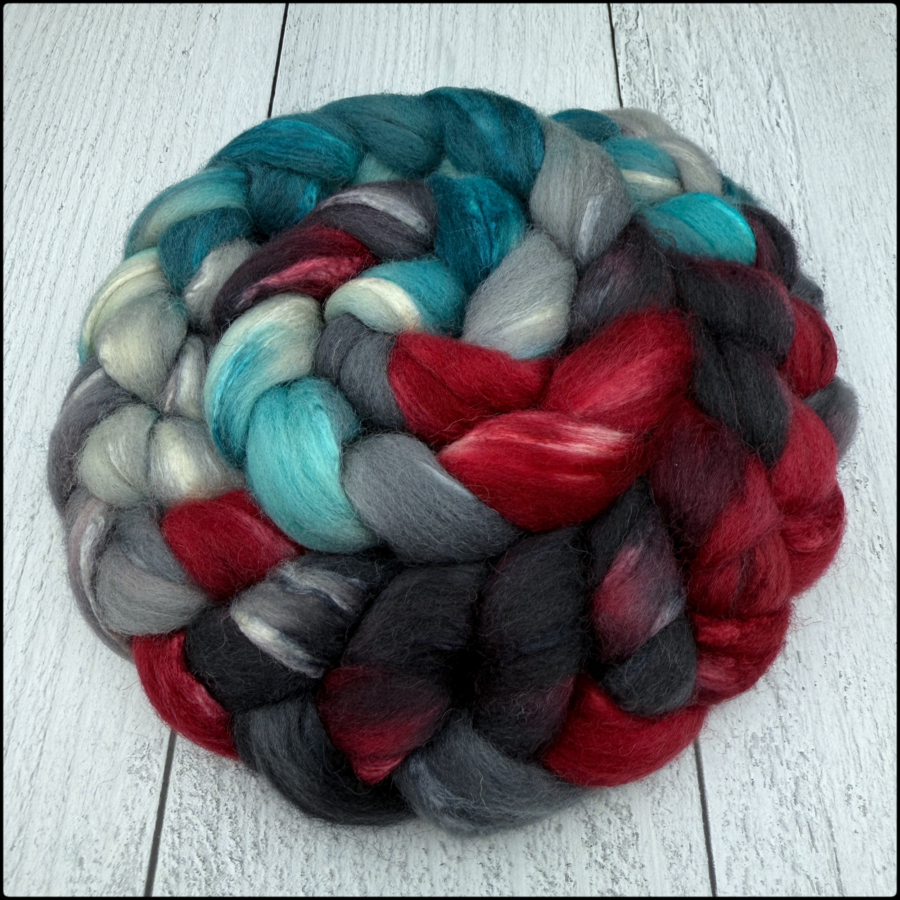 Commercially combed top; hand painted with professional colorfast/lightfast acid dyes. Please note that every effort has been made to fully exhaust any excess dye.