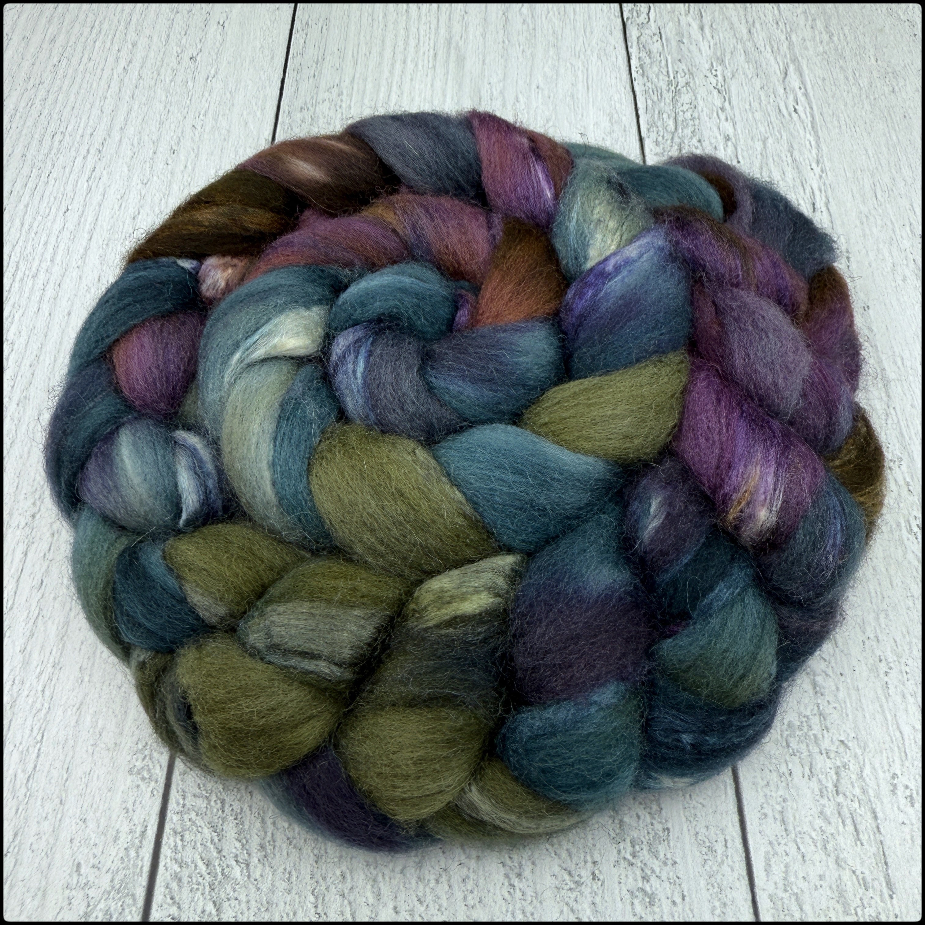 Commercially combed top; hand painted with professional colorfast/lightfast acid dyes. Please note that every effort has been made to fully exhaust any excess dye.