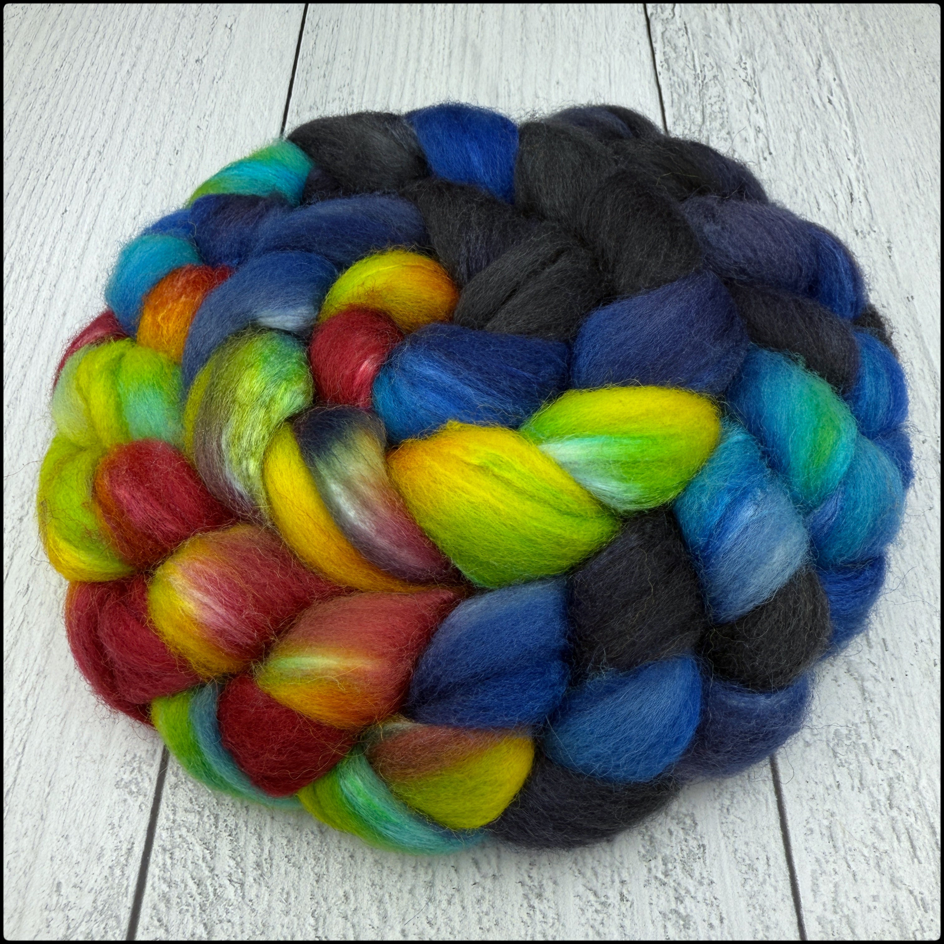 Commercially combed top; hand painted with professional colorfast/lightfast acid dyes. Please note that every effort has been made to fully exhaust any excess dye.