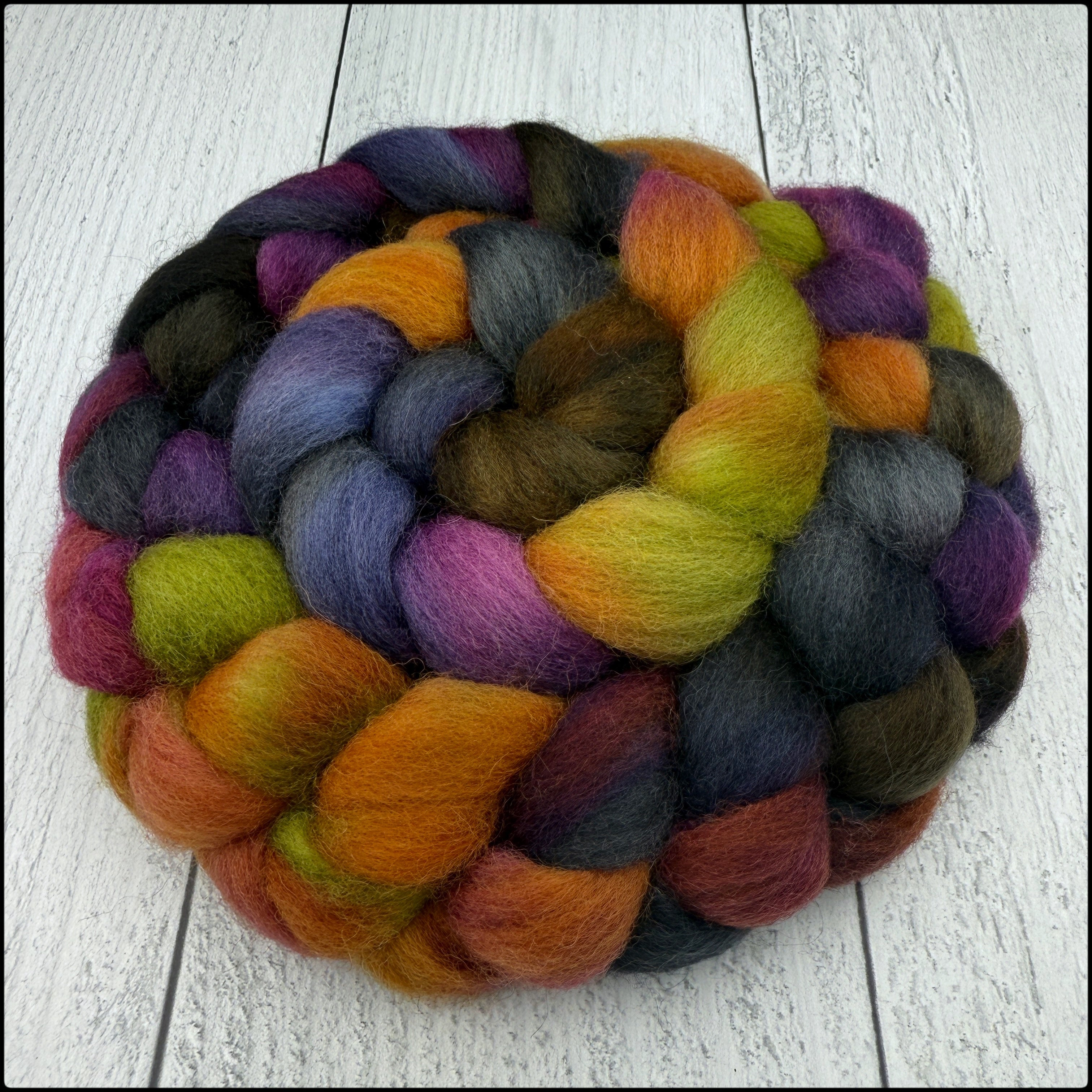 Commercially combed top; handpainted with professional washfast/lightfast acid dyes for hand spinning and felting. Please note that every effort has been made to fully exhaust any excess dye.