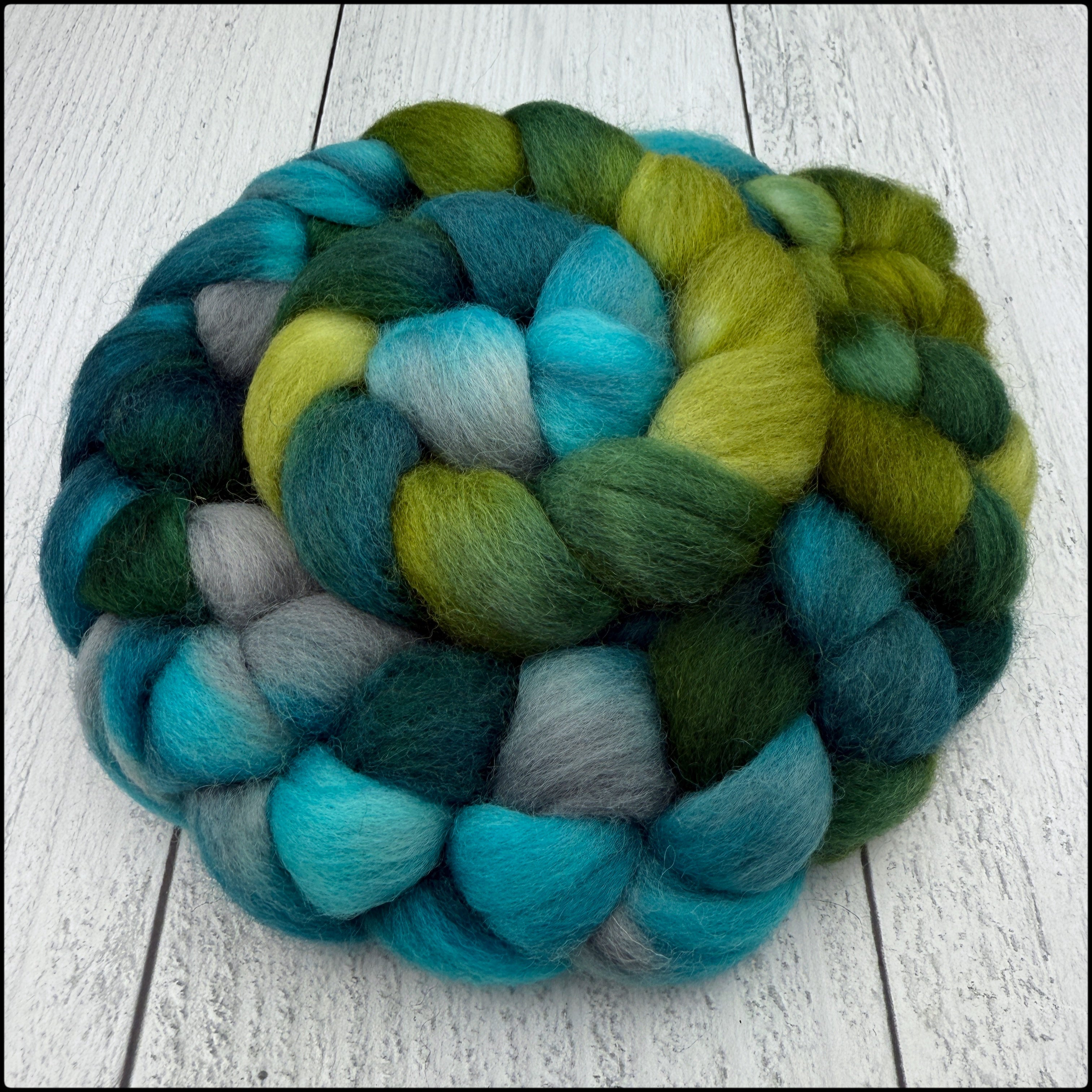 Commercially combed top; handpainted with professional washfast/lightfast acid dyes for hand spinning and felting. Please note that every effort has been made to fully exhaust any excess dye.