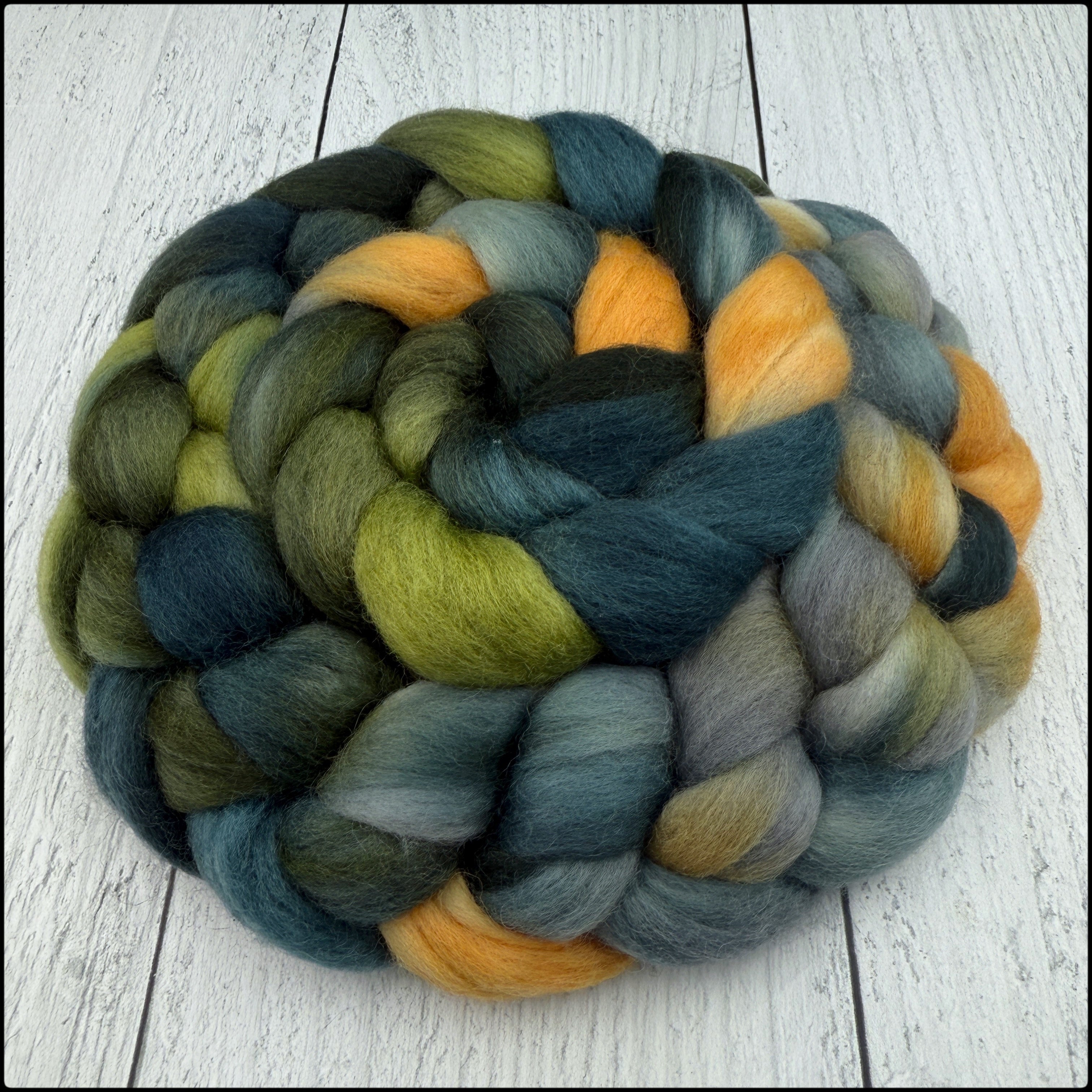Commercially combed top; handpainted with professional washfast/lightfast acid dyes for hand spinning and felting. Please note that every effort has been made to fully exhaust any excess dye.