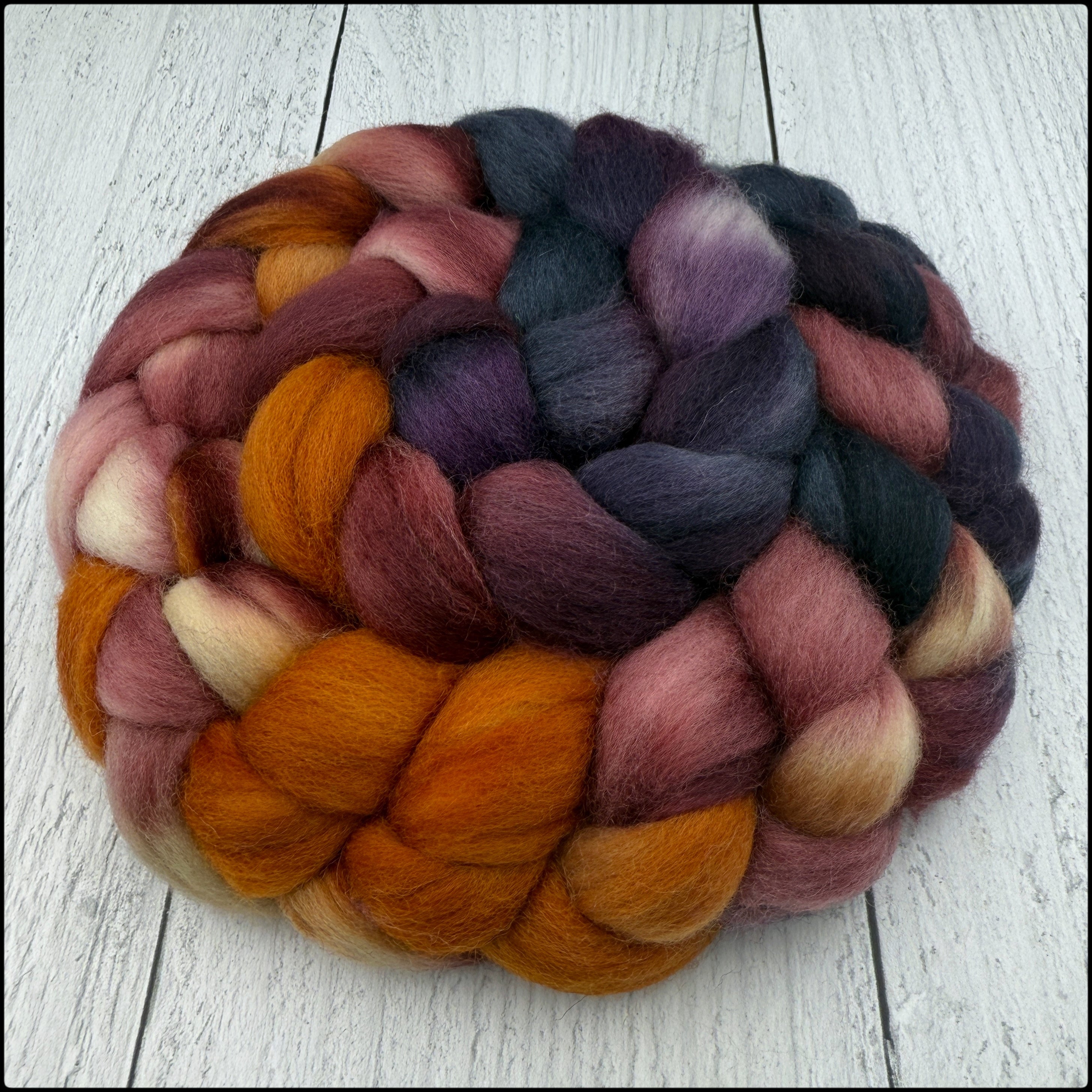 Commercially combed top; handpainted with professional washfast/lightfast acid dyes for hand spinning and felting. Please note that every effort has been made to fully exhaust any excess dye.
