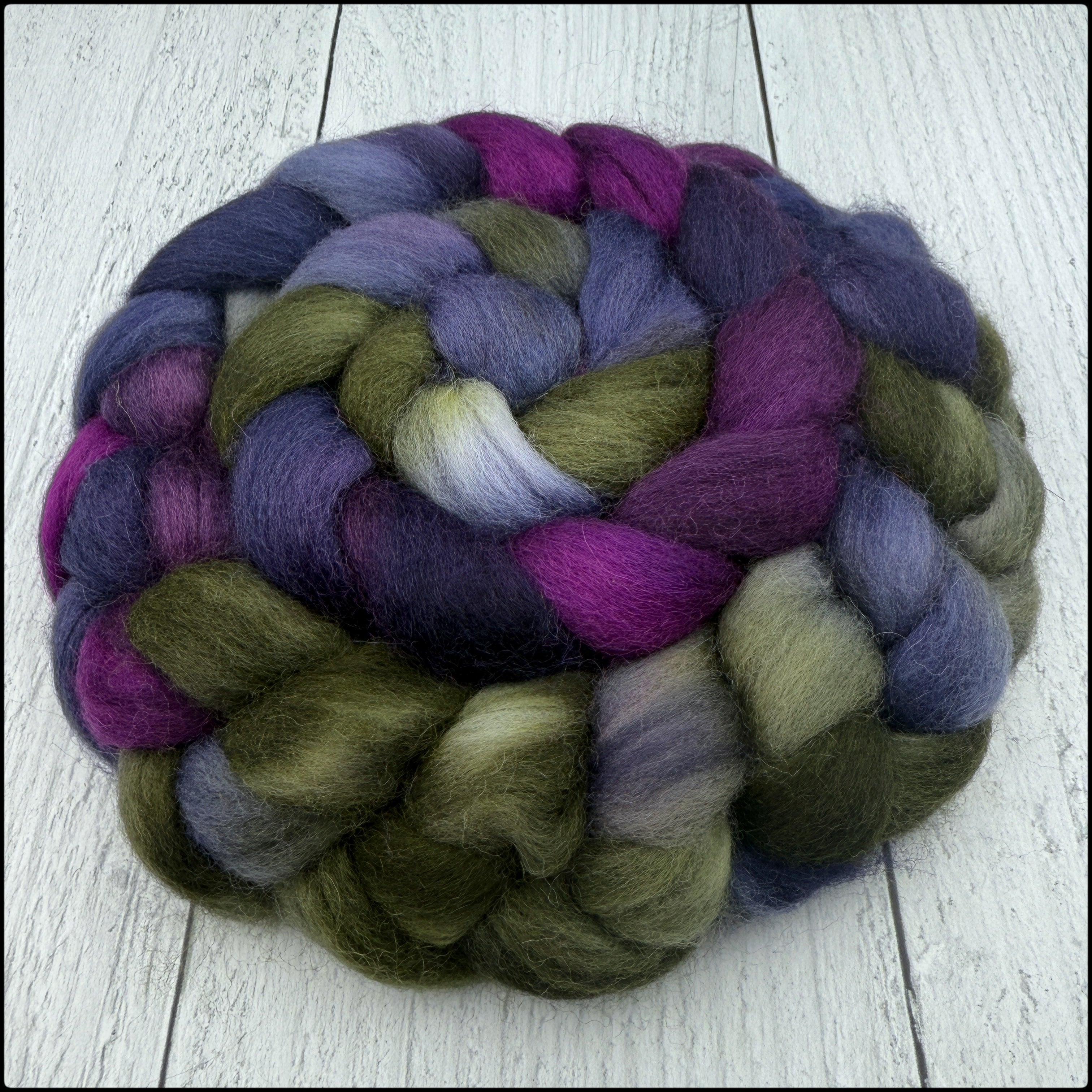 Commercially combed top; handpainted with professional colorfast/lightfast acid dyes for hand spinning and felting. Please note that every effort has been made to fully exhaust any excess dye.