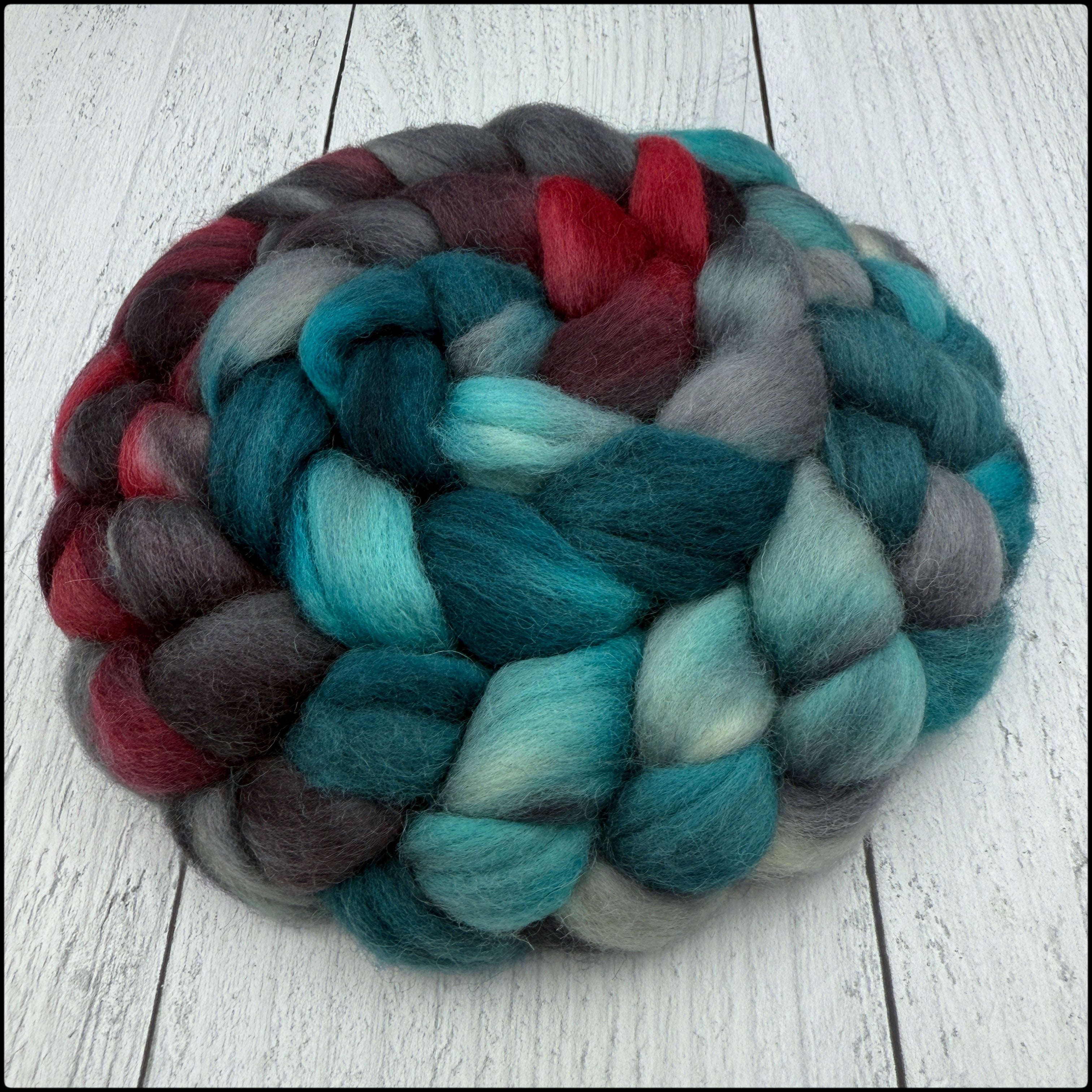Commercially combed top; handpainted with professional colorfast/lightfast acid dyes for hand spinning and felting. Please note that every effort has been made to fully exhaust any excess dye.